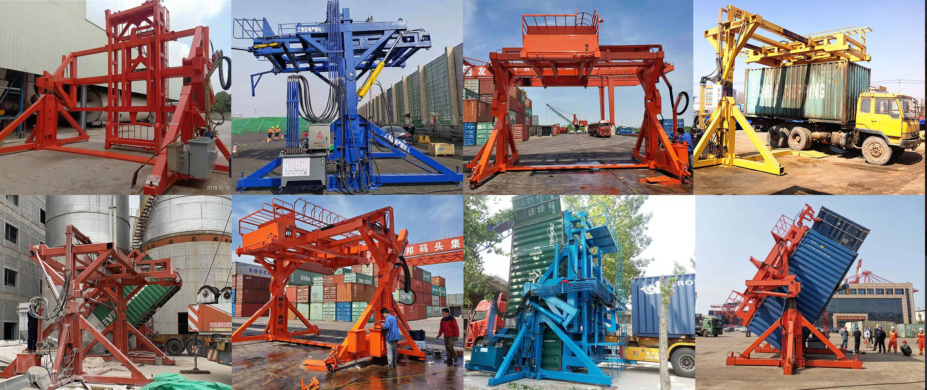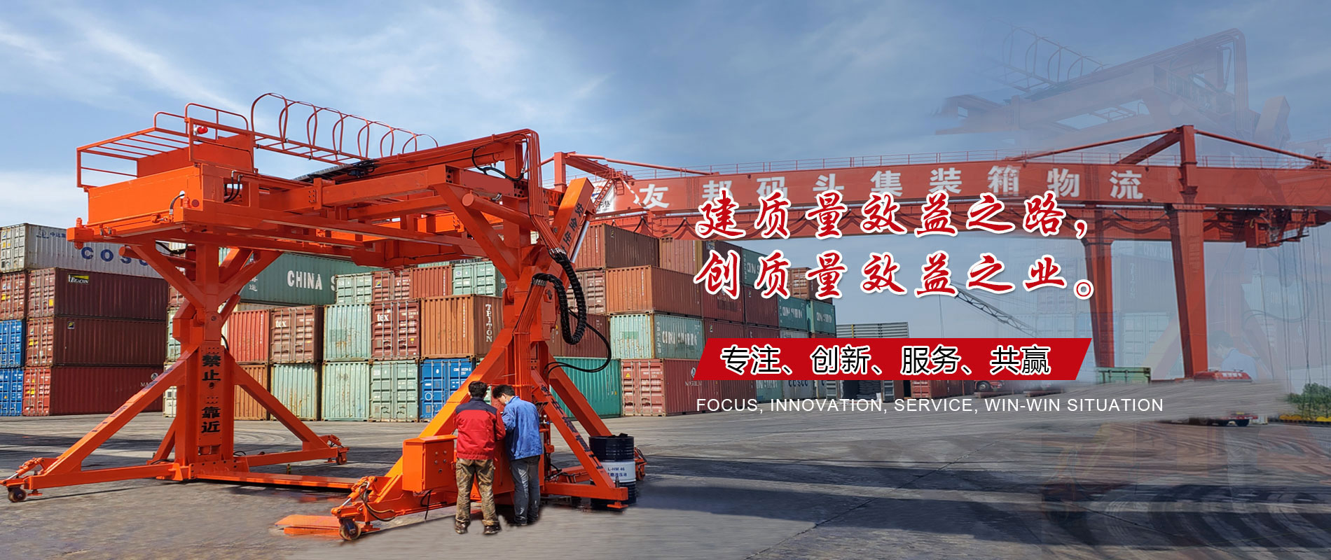 主營集裝箱翻轉機:適用于往集裝箱里裝糧食,水泥,紙漿,礦粉等散料,最大程度的利用了集裝箱的空間,最大效率的節省了裝車時間,提高了出車頻次。集裝箱推送機:解決一些大件裝箱難的問題,整體式的推送貨物到集裝箱里,5分鐘之內裝箱完畢,節省時間的同時也能大量的節省用工成本。